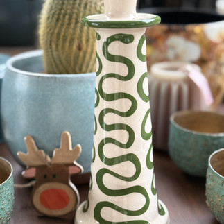 Naast ons stond een kraam met kaarsen, kandelaars en de leukste dingen voor in de kerstboom. Na een dag opzij kijken ging ik helemaal voor de bijl en kocht een rendier voor in de kerstboom en een kandelaar met een slangen motief. Blijkbaar vinden die hun weg naar mij, ook tussen kerstlichtjes en glühwein.